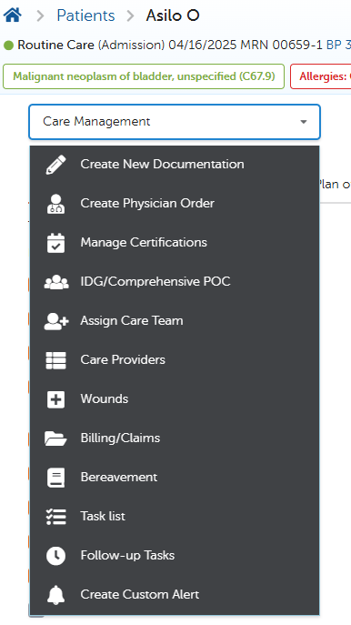"Care Management" menu Print