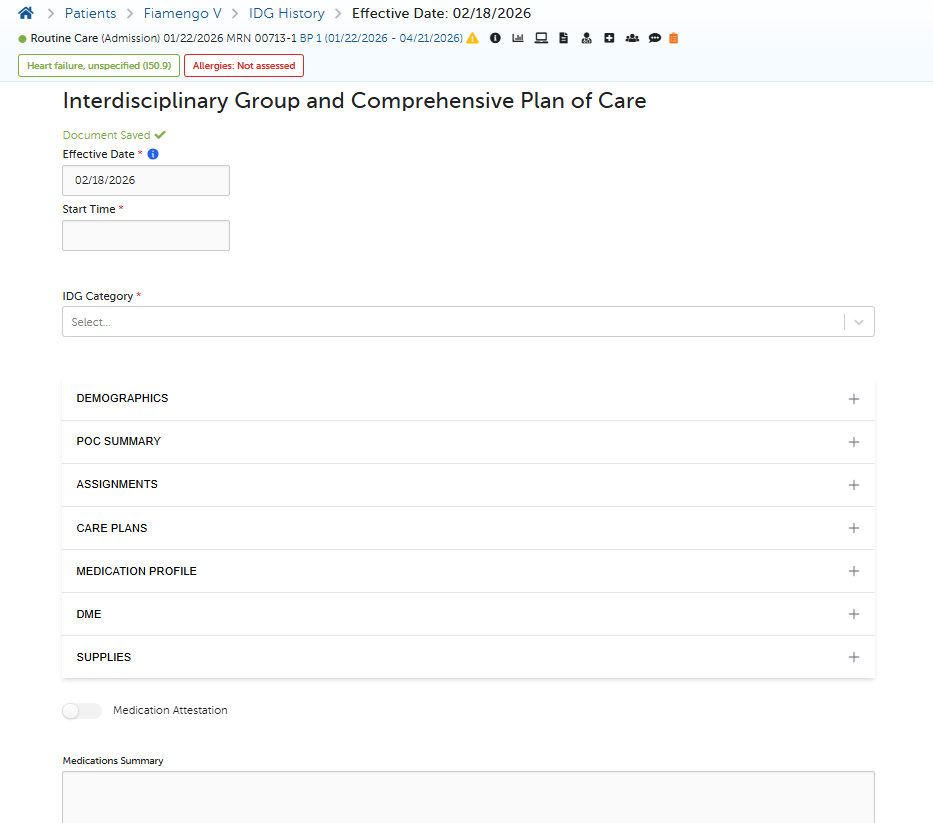 - Demographics, POC Summary, Assignments, Care Plans, Medication Profile information will all be pulled in from the medical records automatically.