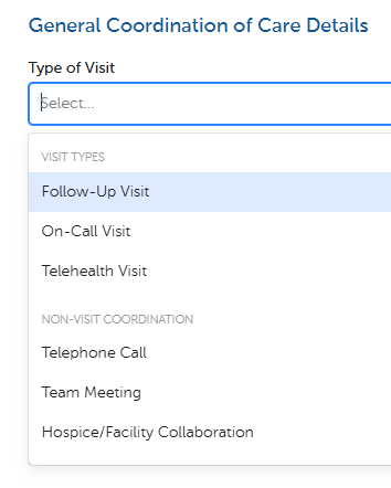 Select the type of visit