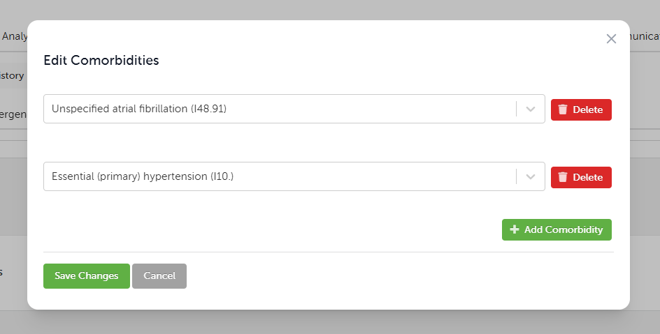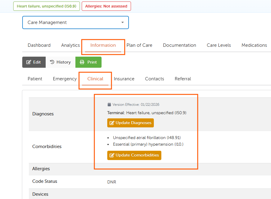 In the Clinical, click on either Update Diagnosis or Comorbidites