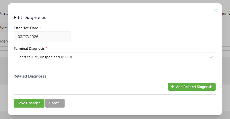 A diagnosis and comorbidity can be changed after admission in Patient's Information.