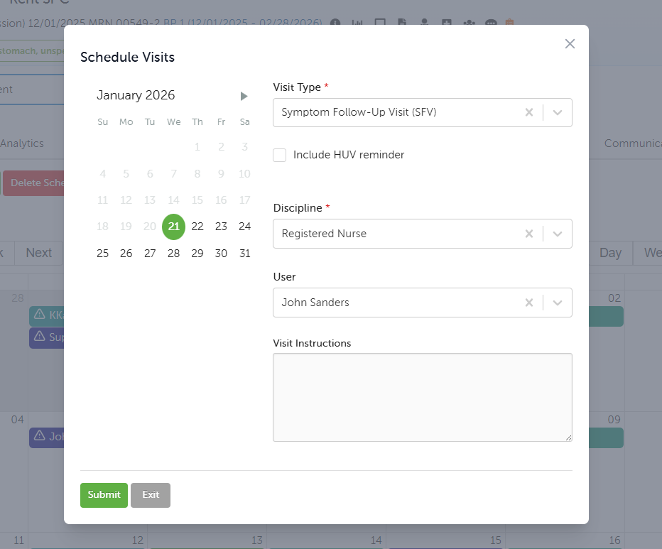 If you prefer to schedule visits first, you can create the SFV directly from the patient’s calendar.