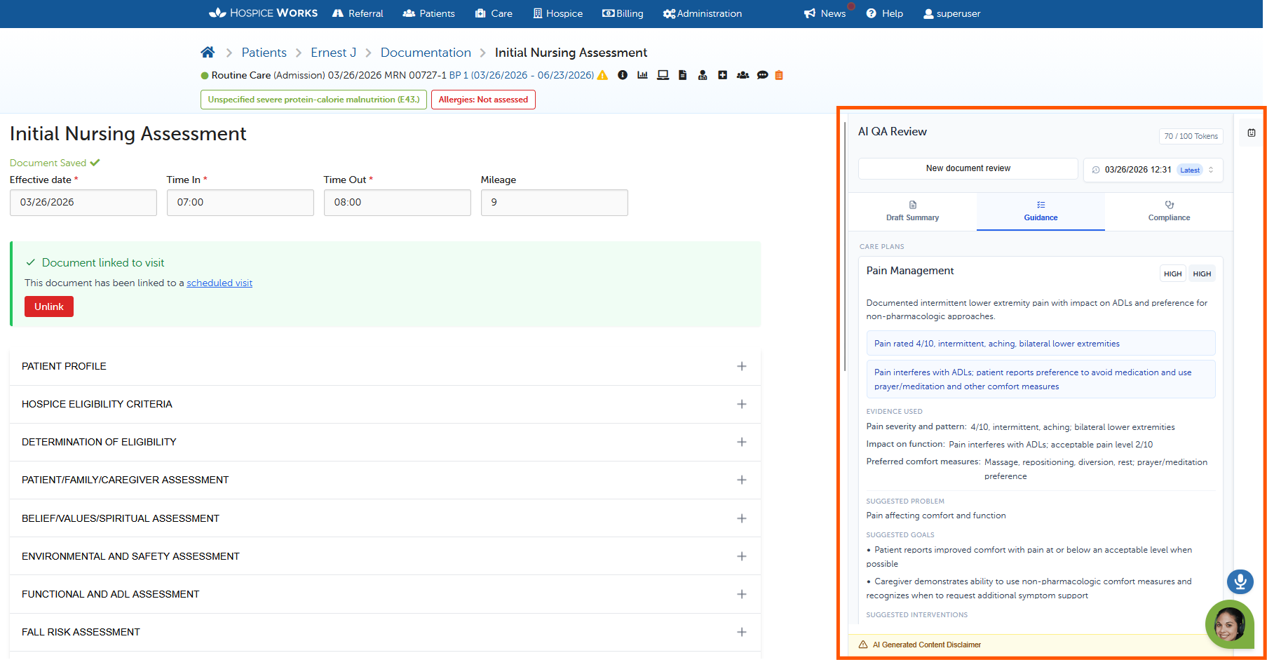Draft Care Plans: Get instant recommendations for pain management, nutrition, fall risks, and more.