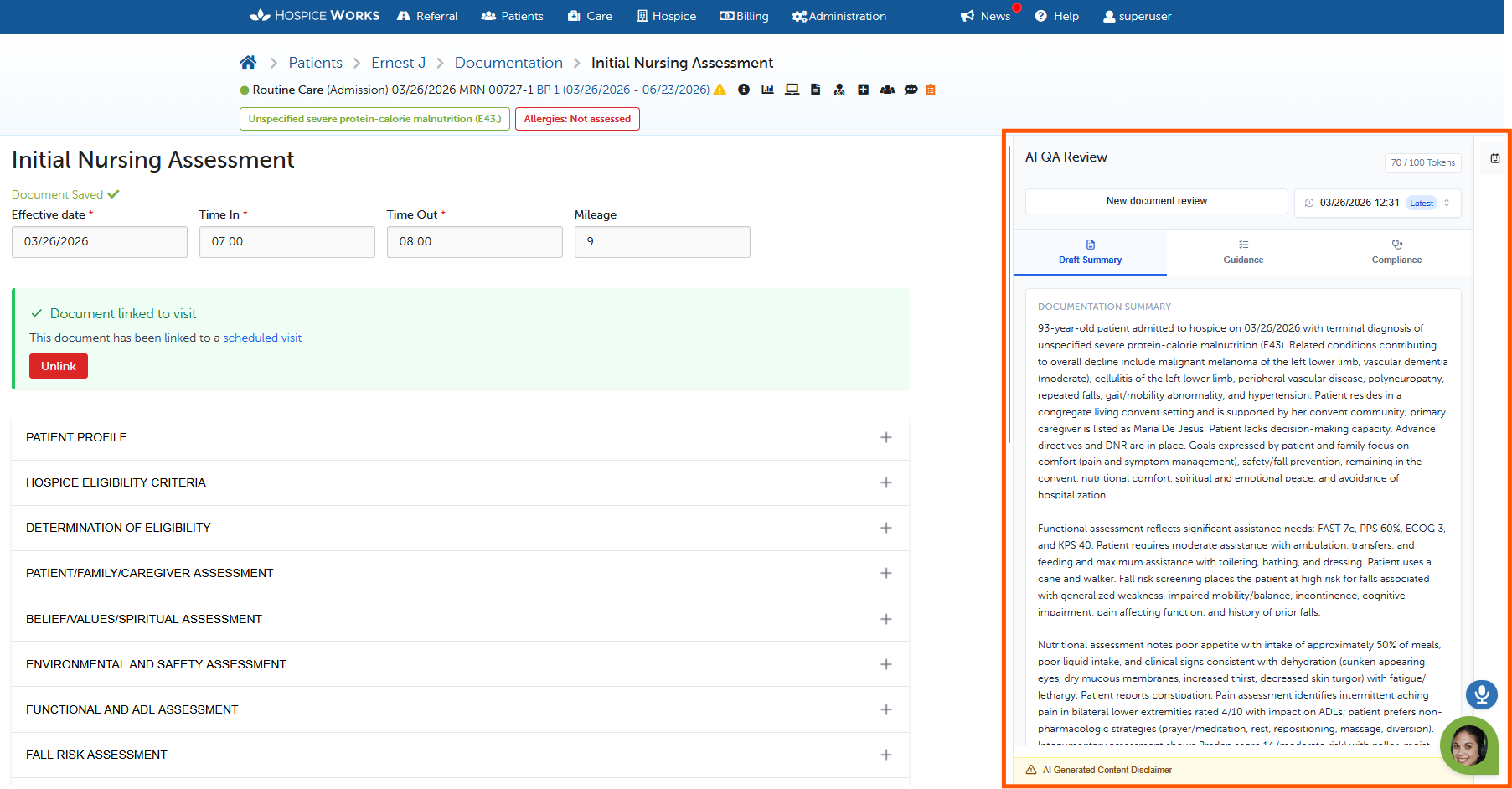 The AI is a "meticulous peer" double-checking your work, but it is not a replacement for clinical judgment. The "Human-in-the-Loop" philosophy means the clinician is always the final authority. You must review, edit, and approve all AI-generated content. No care plan or summary is official until it has been vetted and signed off by the licensed clinician.